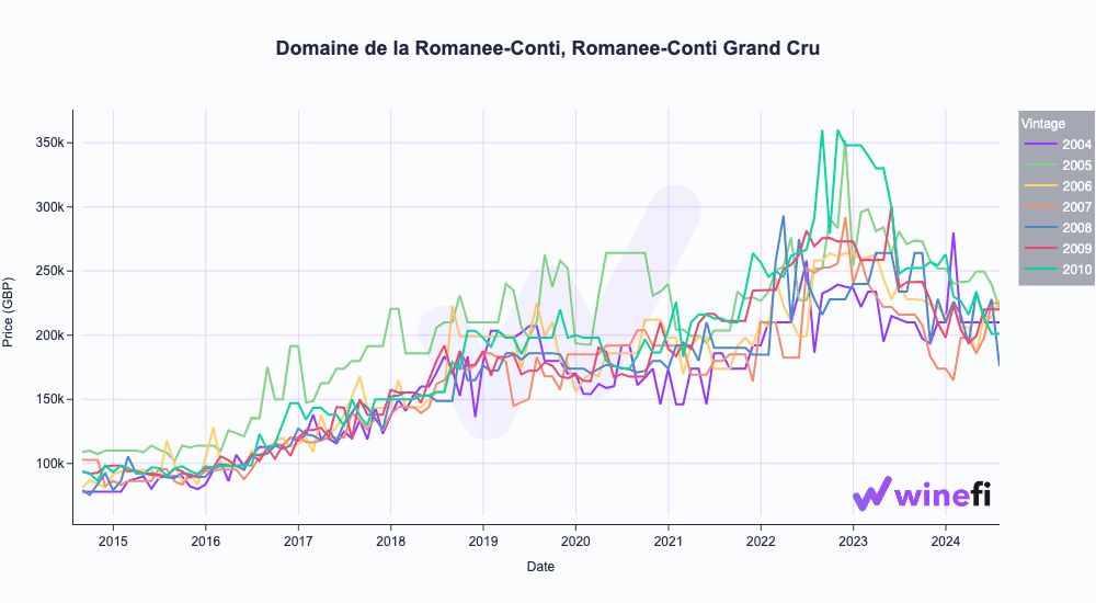 More consistently high and predictable returns however, are to be found at higher price ranges £9,600 - 19,200, with names like DRC. These wines are very unlikely to 10x in price but have demonstrated consistently strong returns across all vintages for some time now.