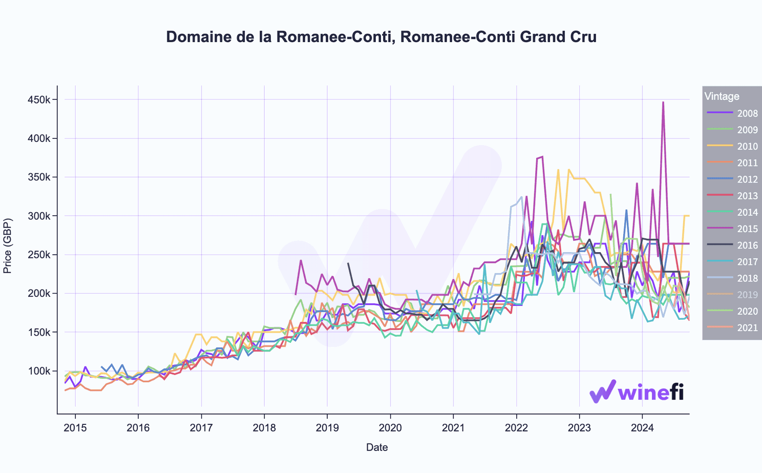 At WineFi, we have tools to understand the characteristics of a specific vintage of a specific label over the last X period. See below for a behind the scenes look at AskAaran (named that way because Aaran, our Head of Data wanted us to stop bothering him for wine performance charts).