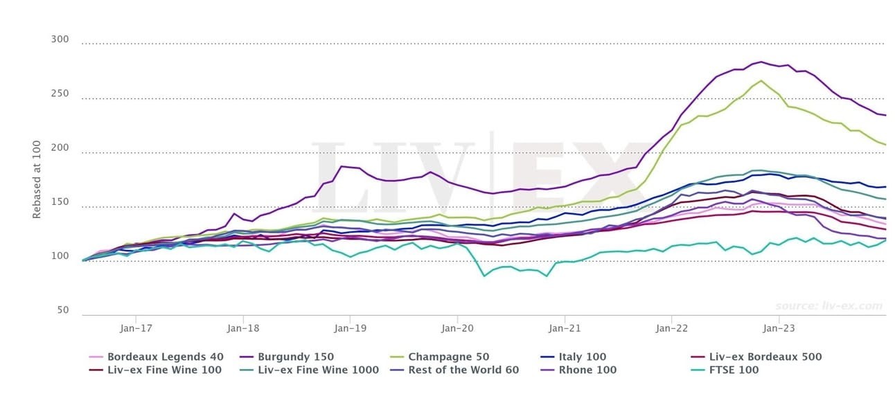 The wine market downturn in late 2023 / early 2024 has led to blue chip assets trading well below their all time highs, providing an attractive opportunity for new investors looking to access the asset class.